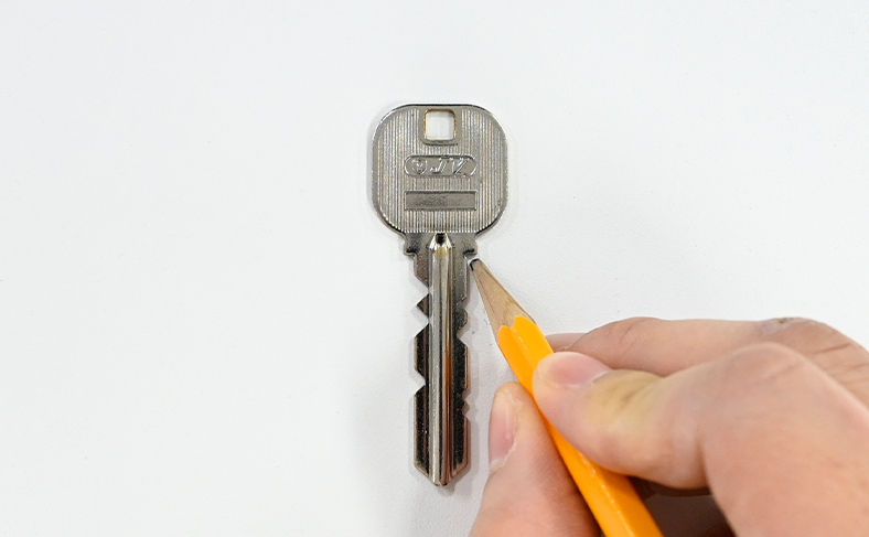 鍵の段差にそって鉛筆を押し当てていき、何度か抜き差しすれば完了です。